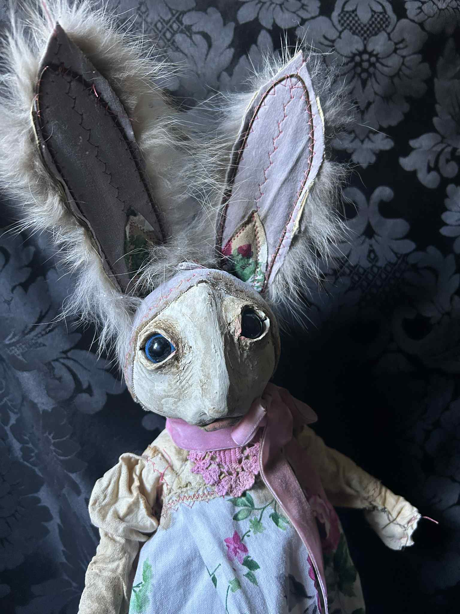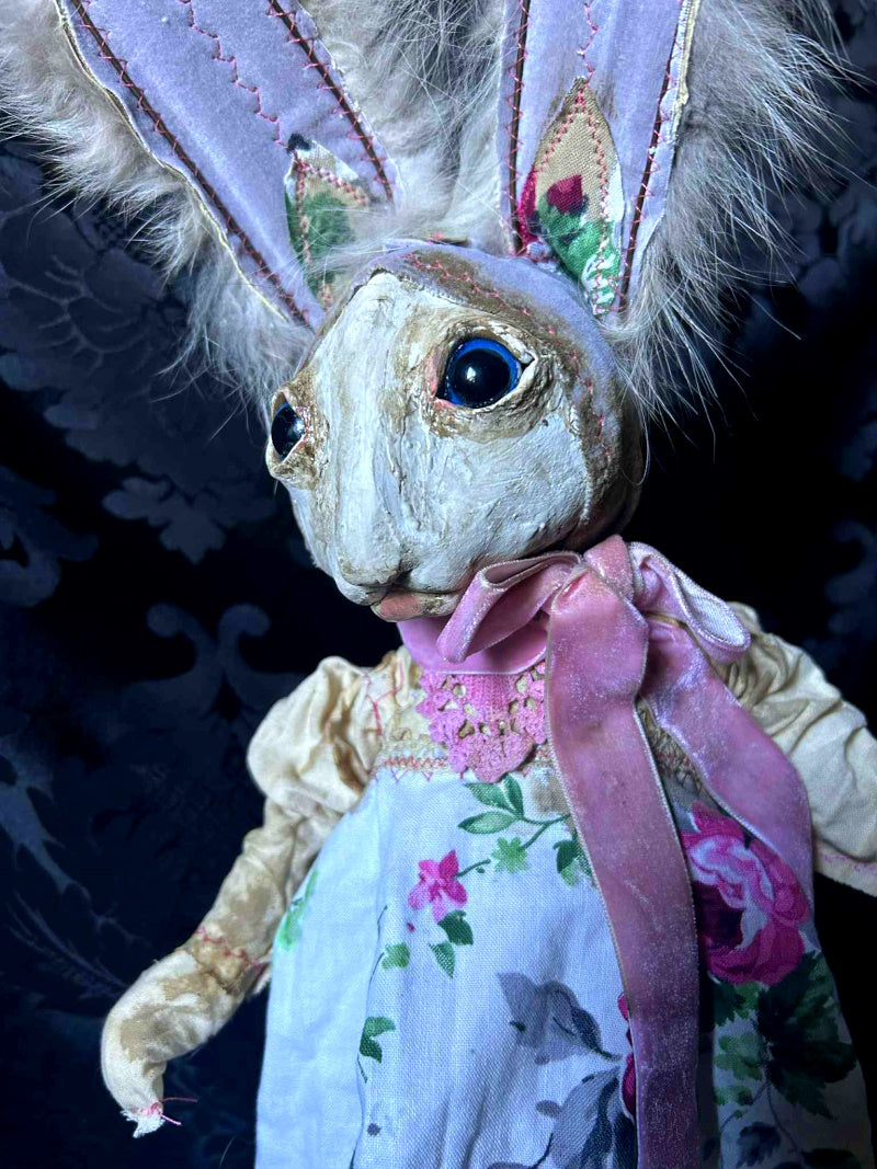FIORELILY is a bright rabbit in antique fur and vintage floral cotton.