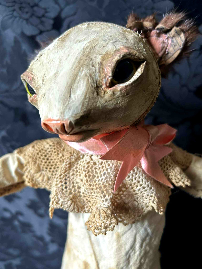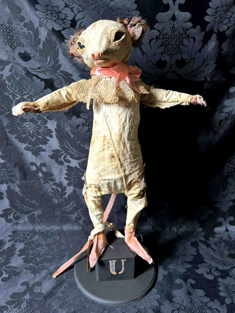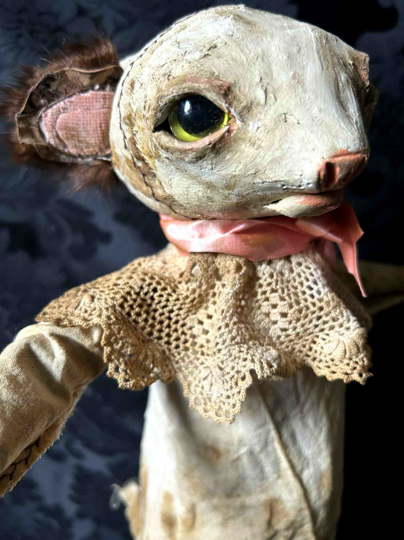 PENKWE is sweet yellow eyed mouse, in antique fur and antique lace.