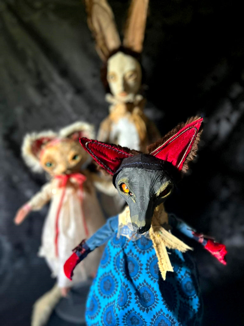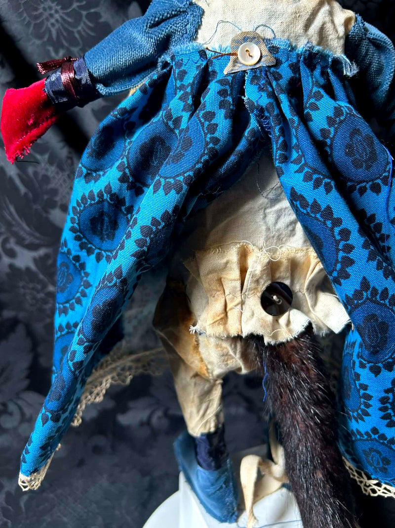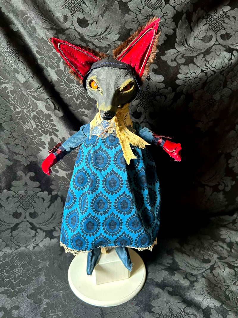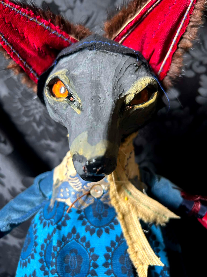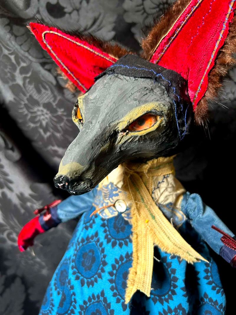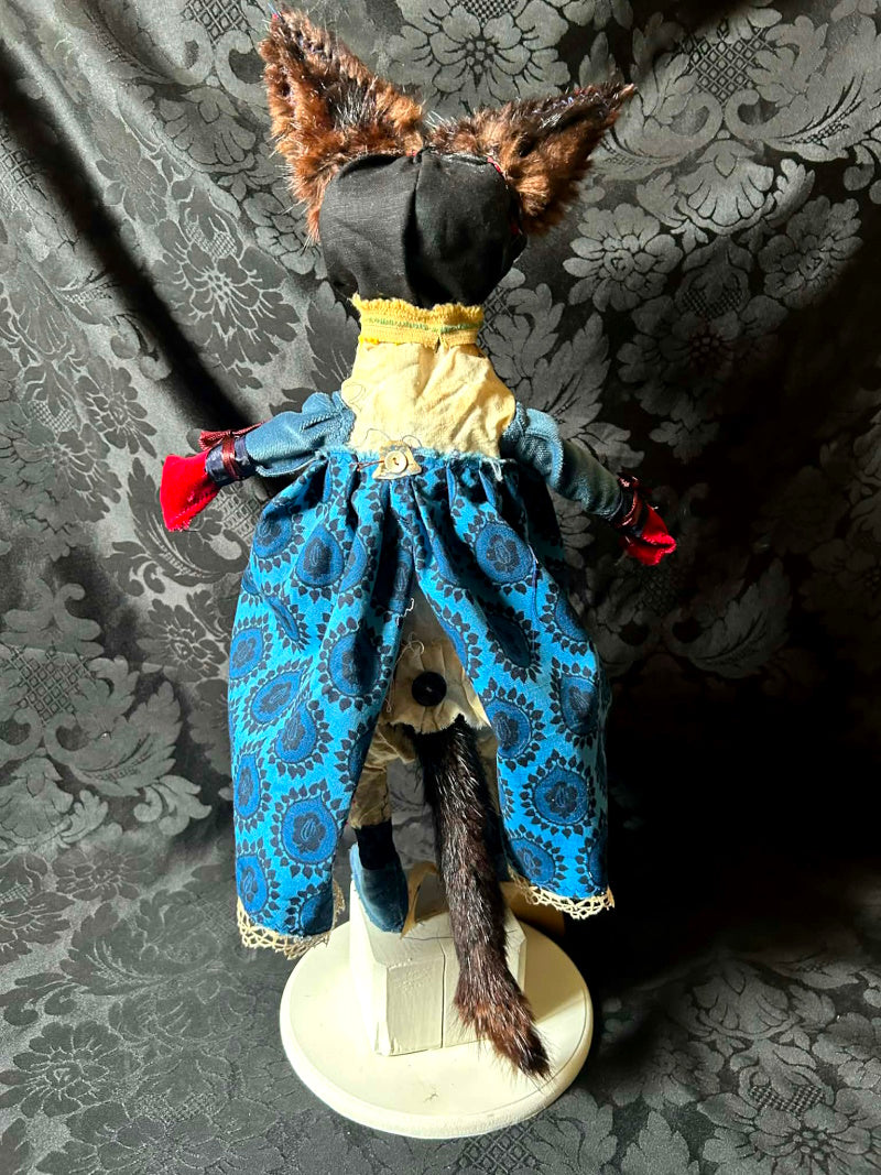 QUAPHELIA is a black fox in cotton print, FORTUNY fabric remnants and antique fur.