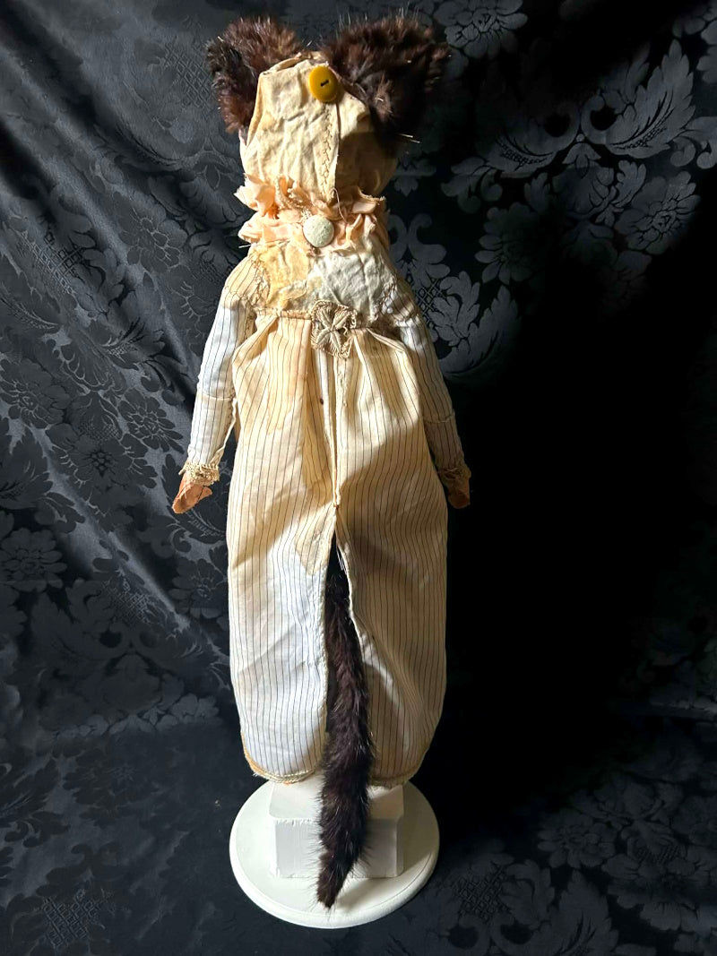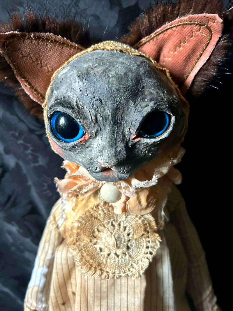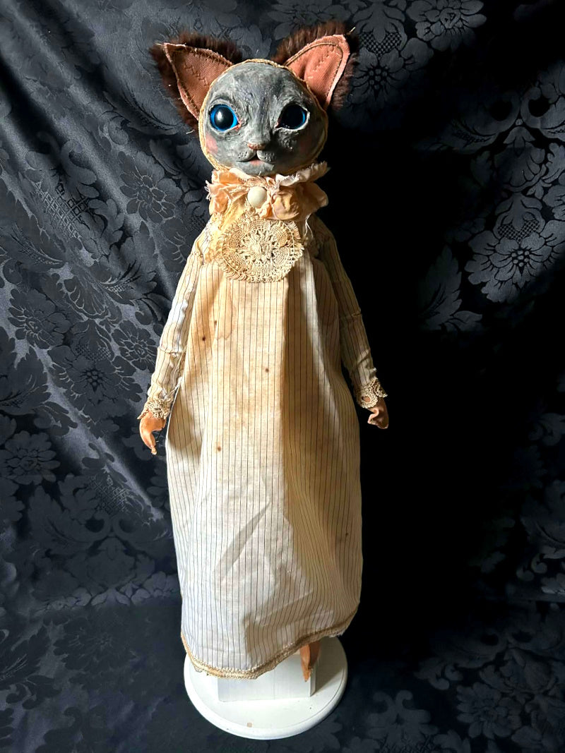 SOUBRETTE is a Siamese Cat in antique fur and pinstripes.