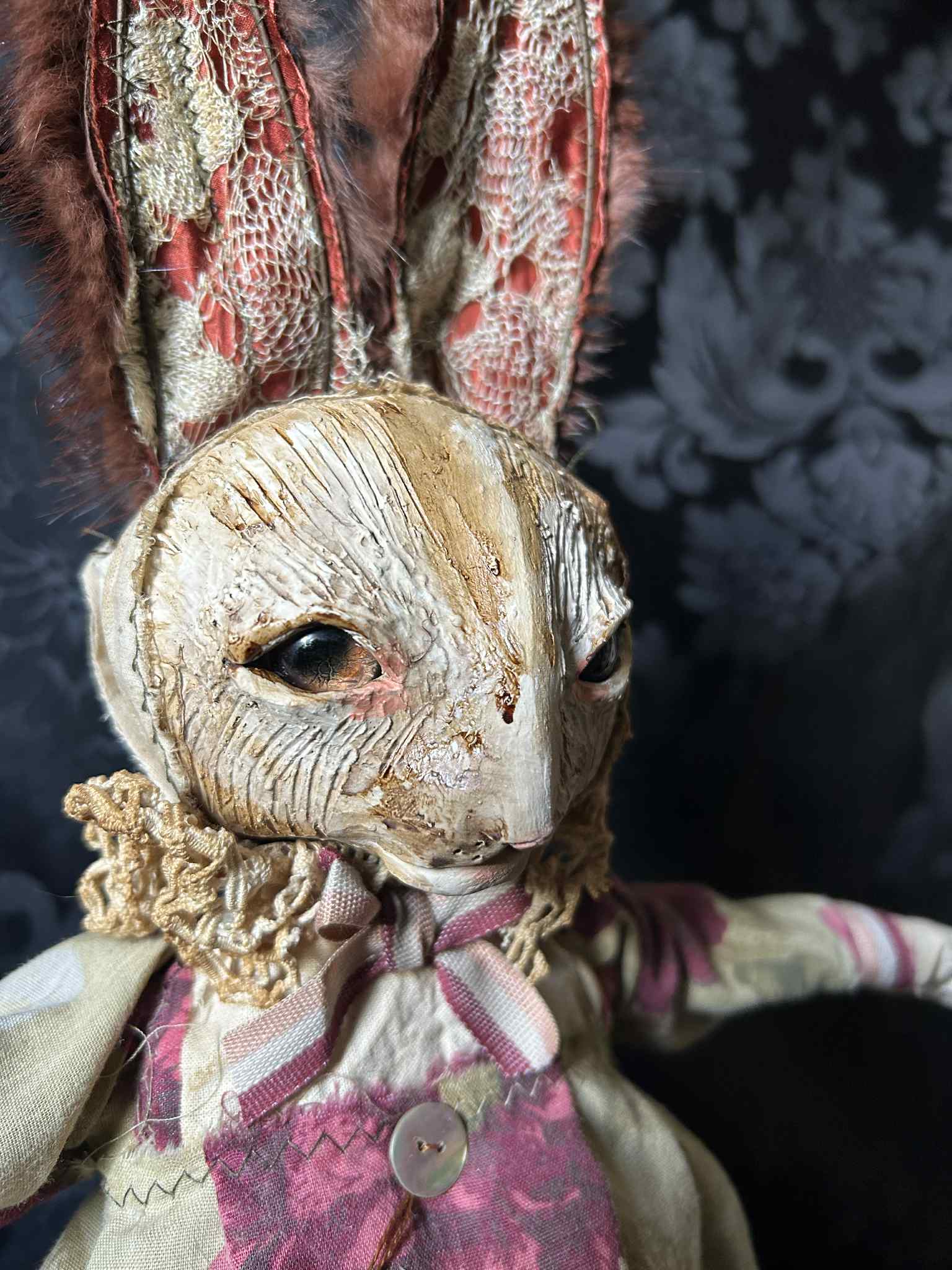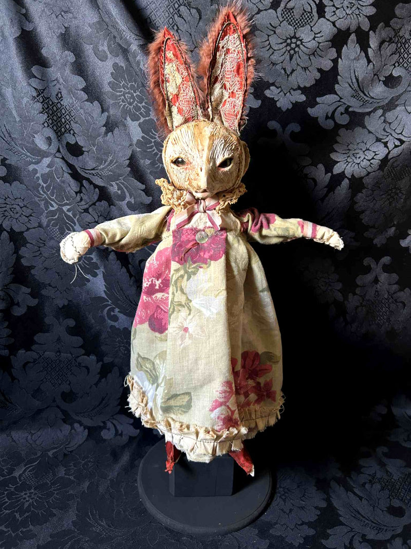 ABISKI is a chestnut eyed rabbit in antique lace and antique fur.
