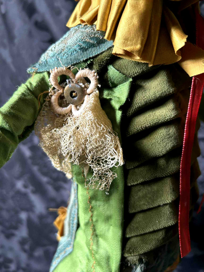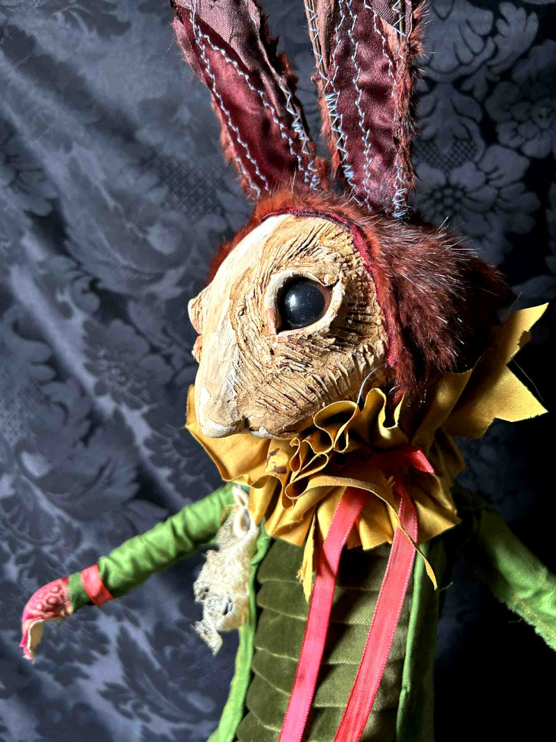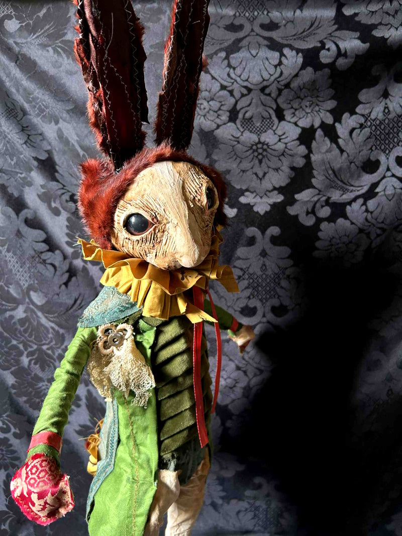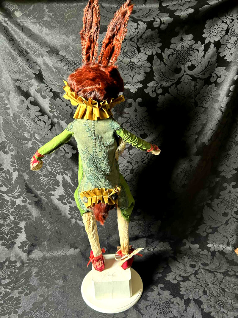 ELKHAM is a tall chestnut rabbit in early 1800's French fabric and antique fur.
