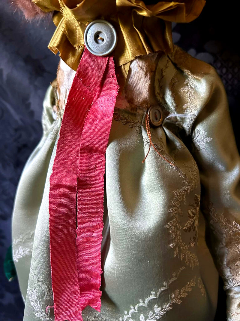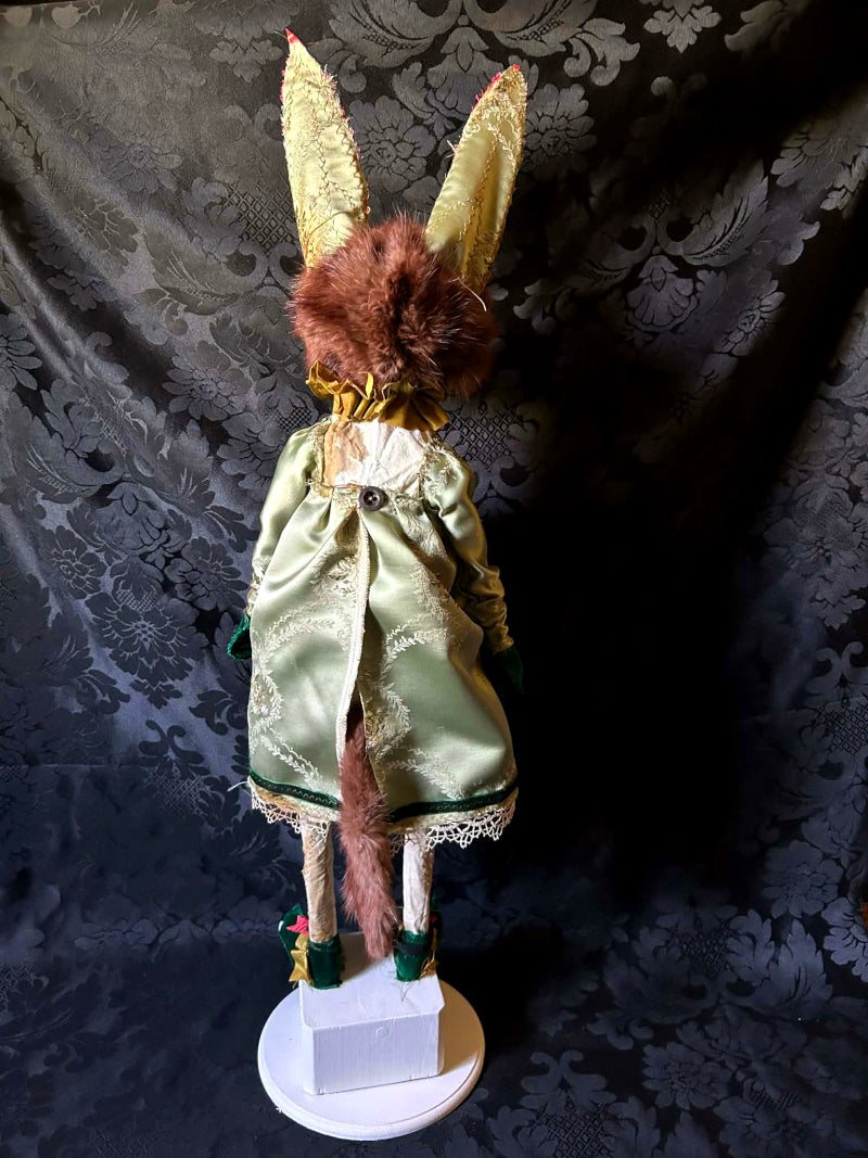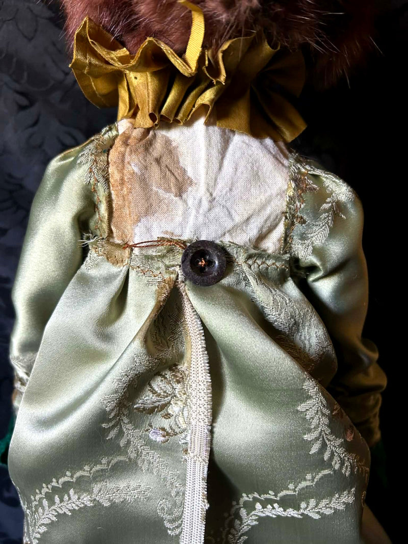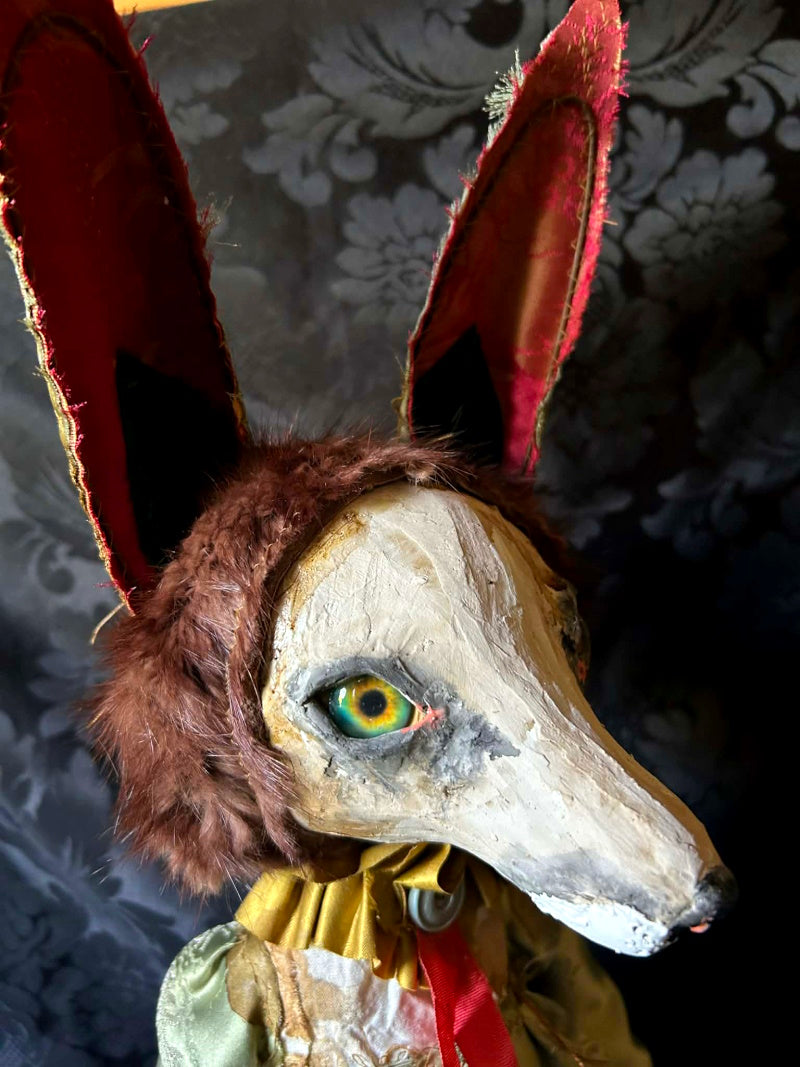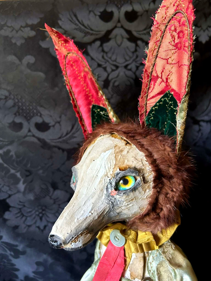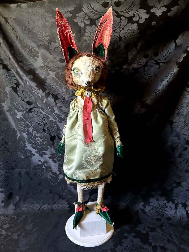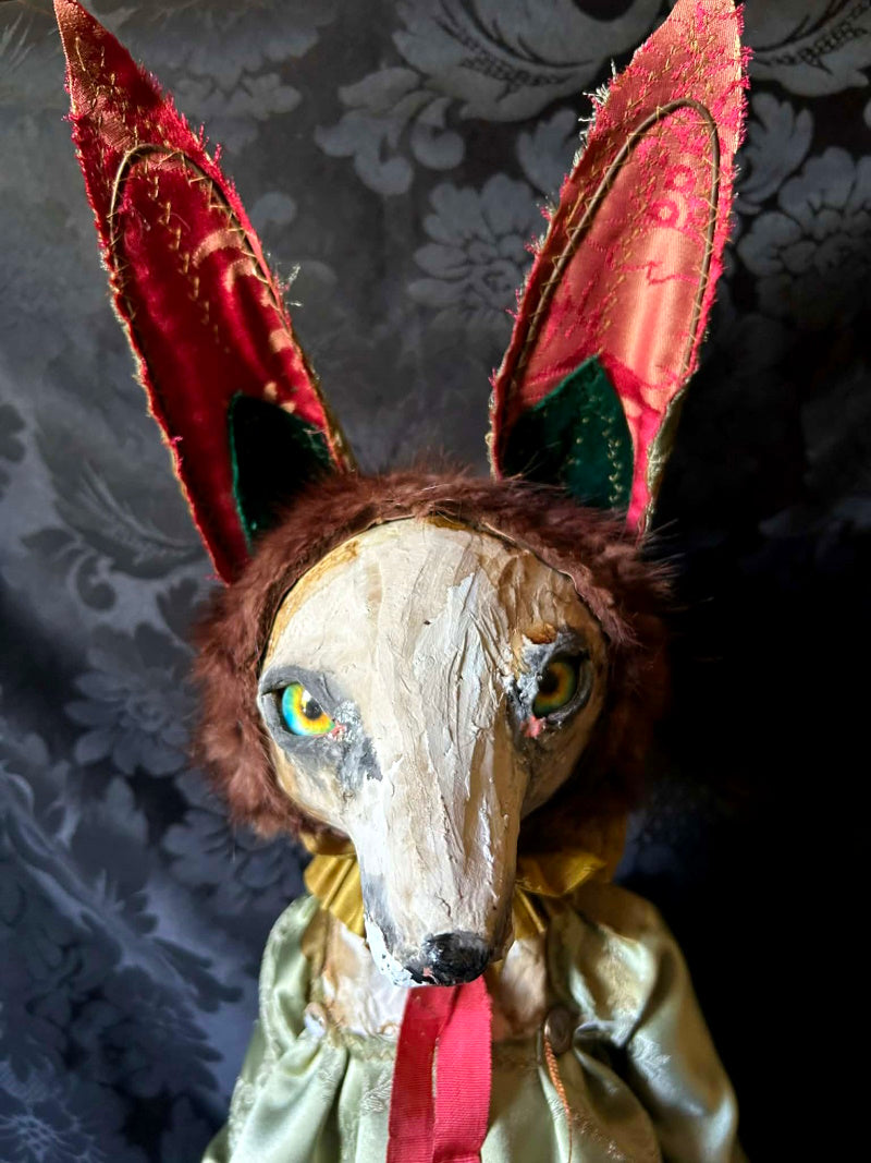 ERNABELLA is a rainbow eyed, long eared fox. In antique brocade and antique French satin.