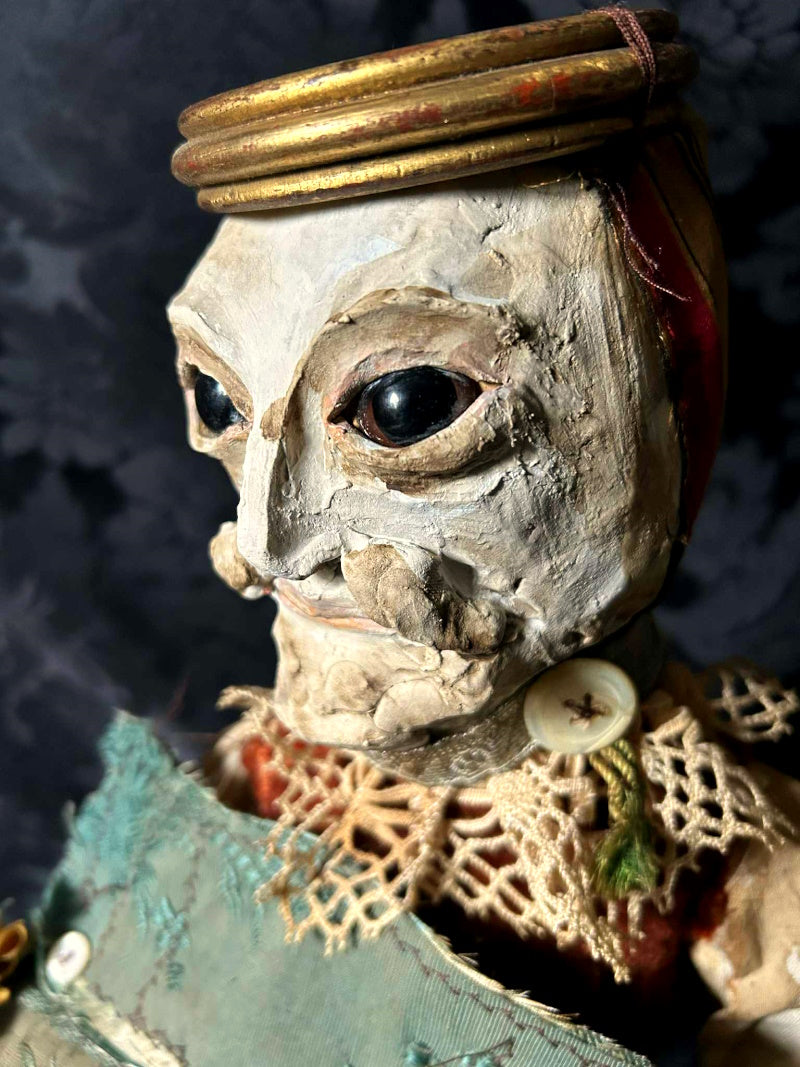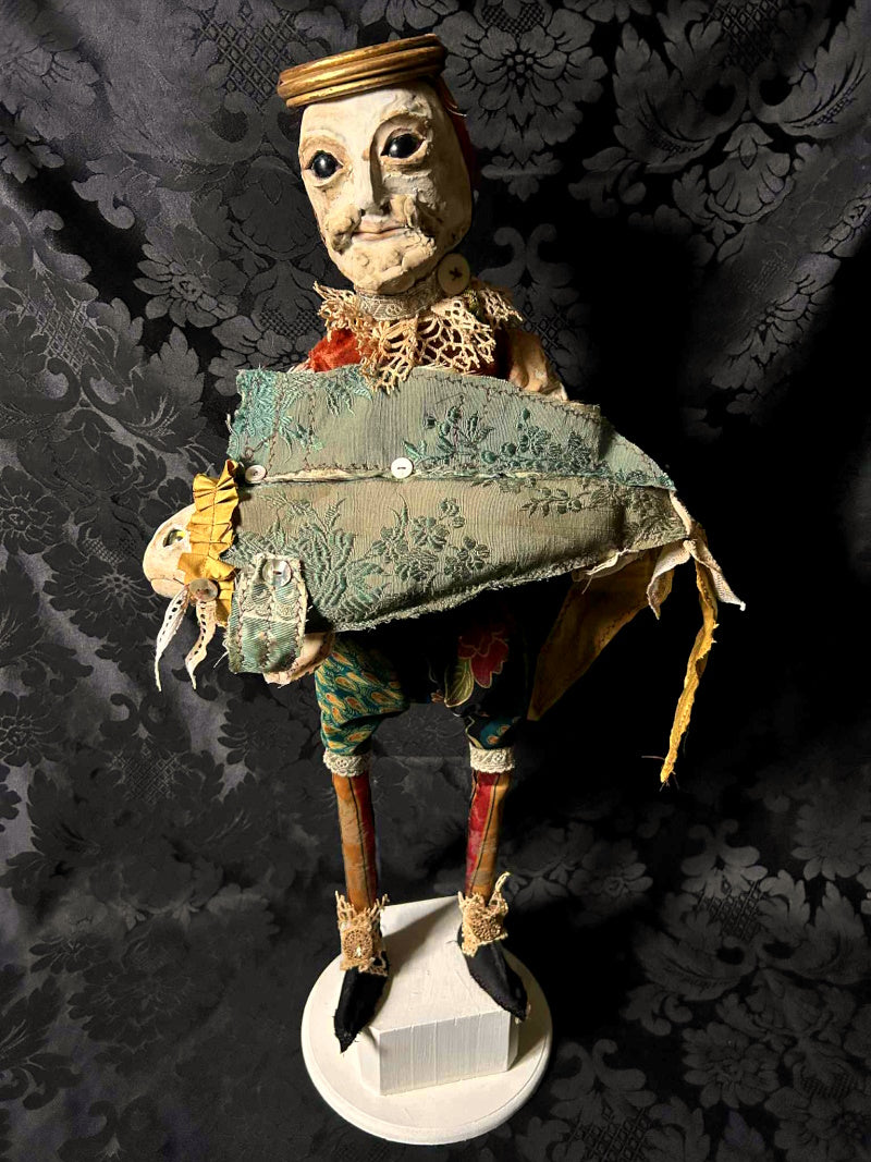 MALMGREN + FISH is a proud king with his best fish. Antique fabric and golden wood crown.