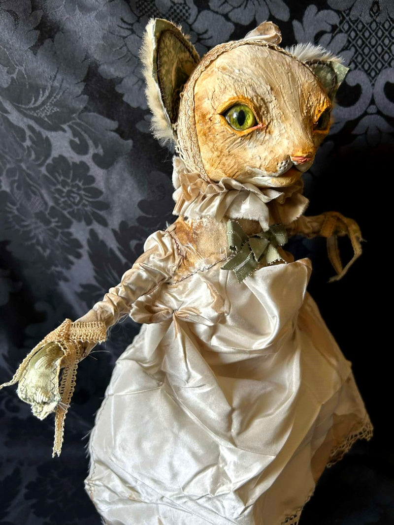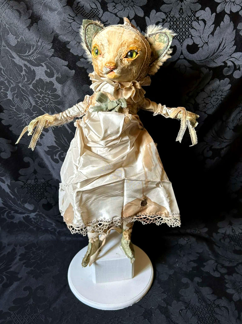 PELKINIE is abright kitten in stained antique satin and antique fur.