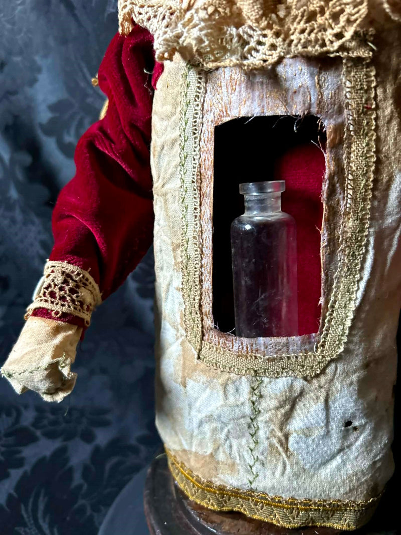 RAVELLO is a reliquary piece, a special place to keep a remnant or memory of a loved one. With an antique glass bottle to store fur, whiskers or anything you wish.