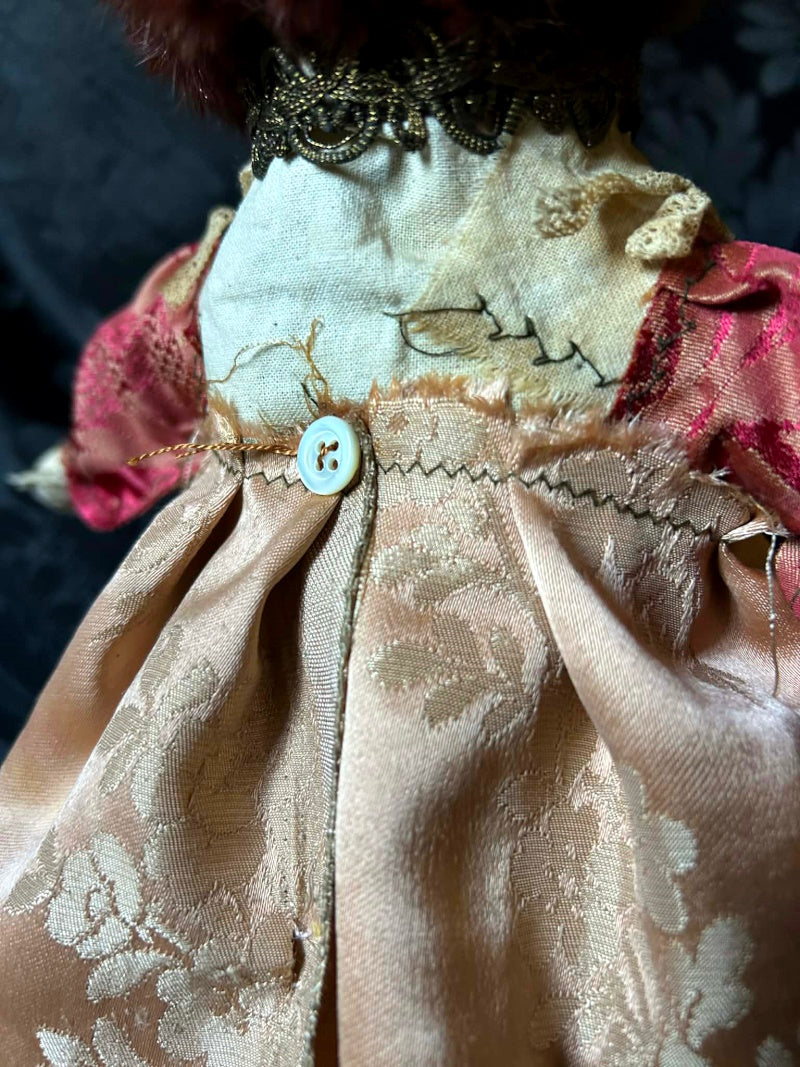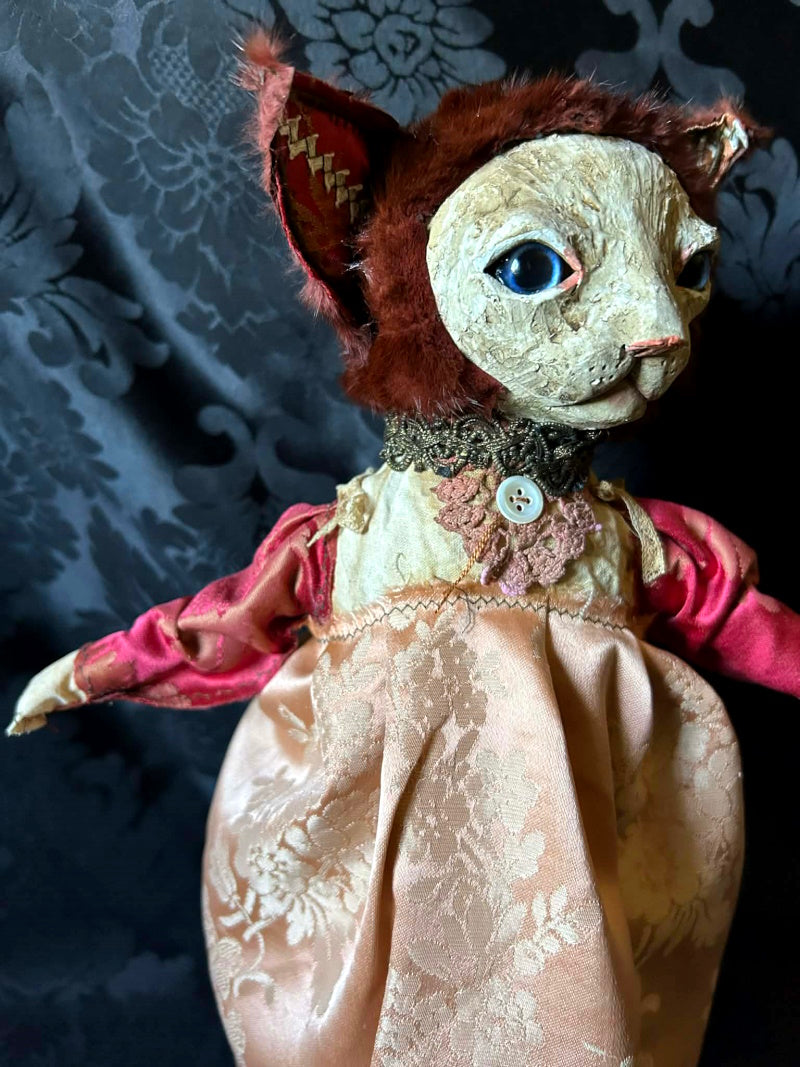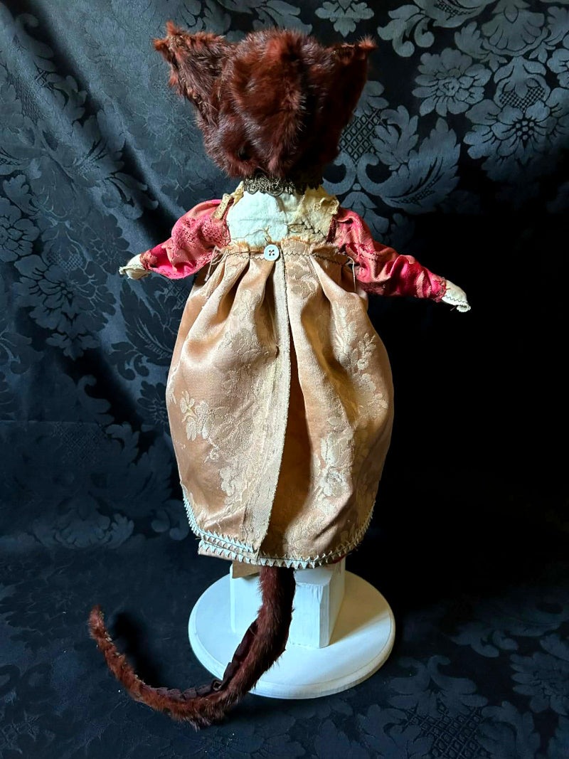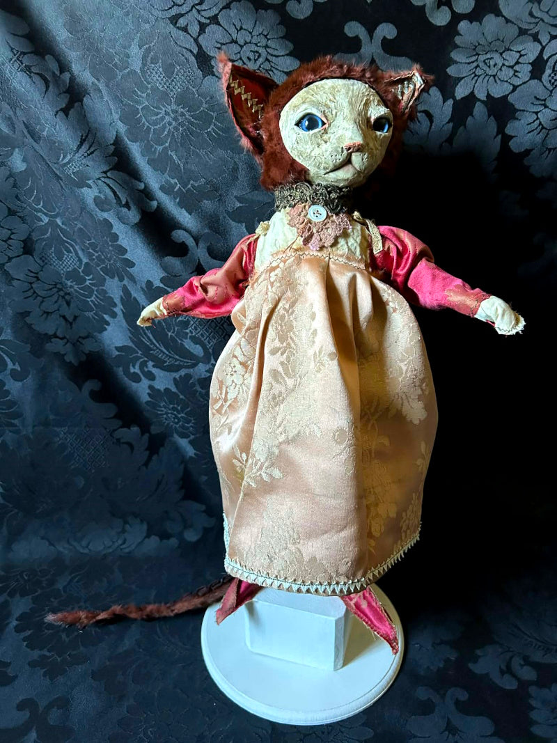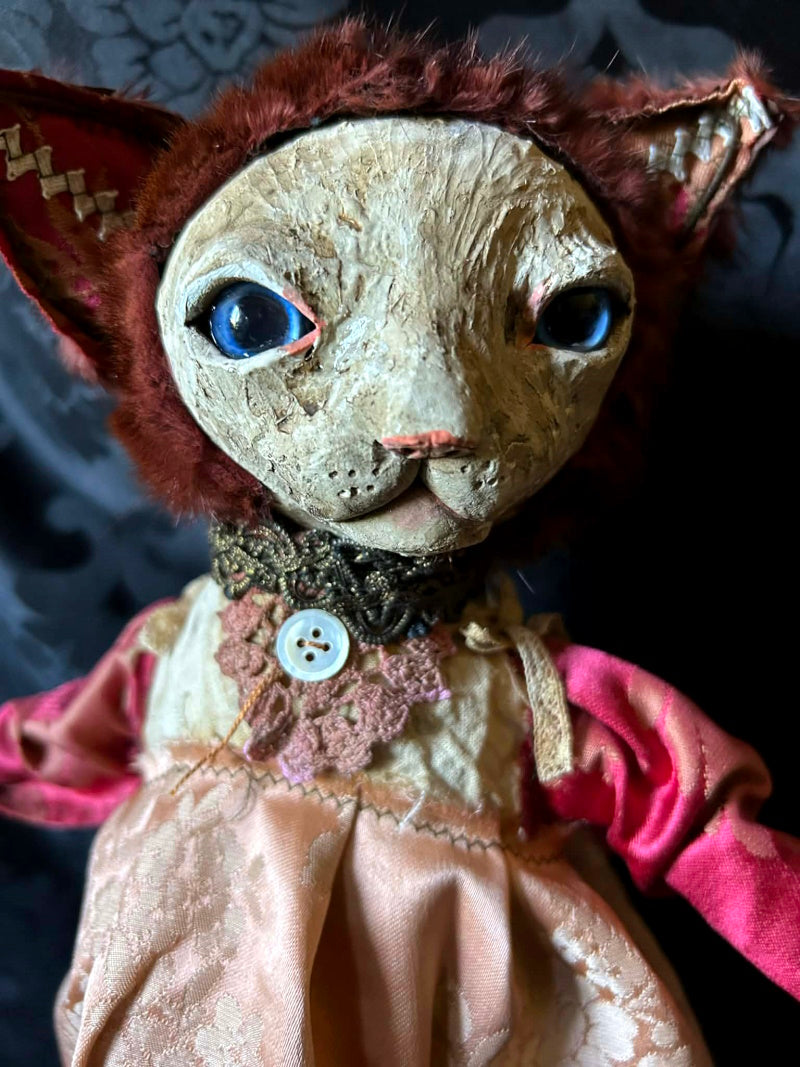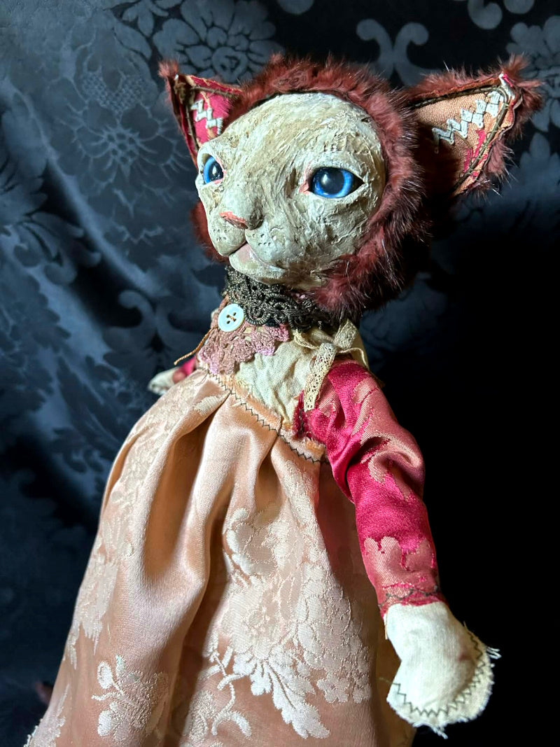 SOUMIA is a blue eyed kitten in antique brocade and antique fur.