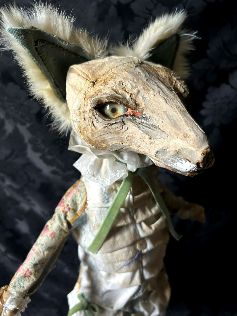 THALURSIAN is a dreamy eyed white fox in white silk and antique fur.