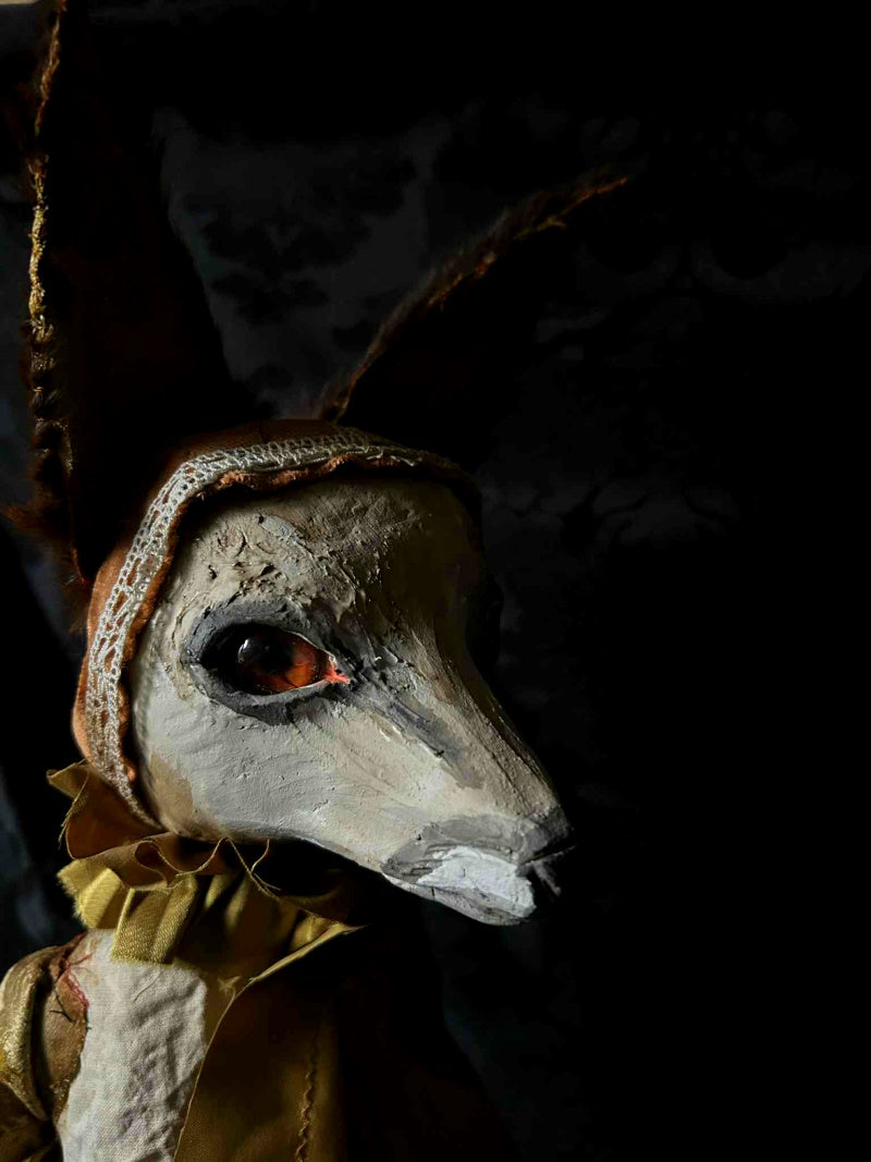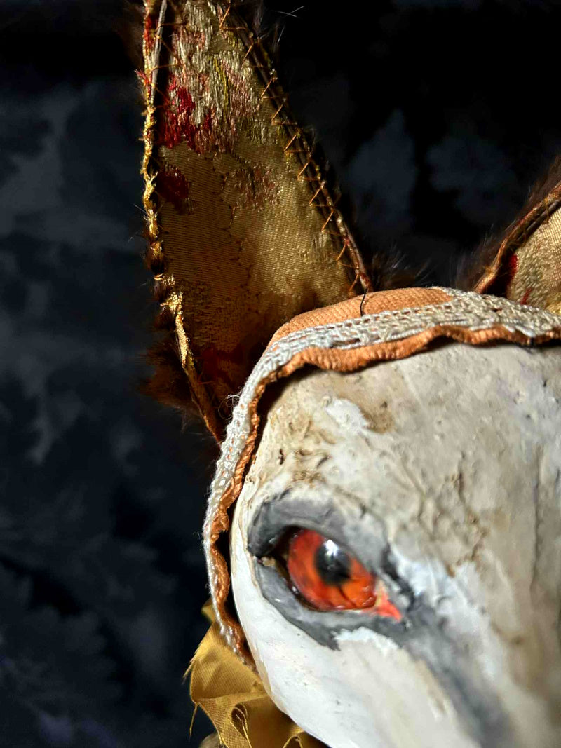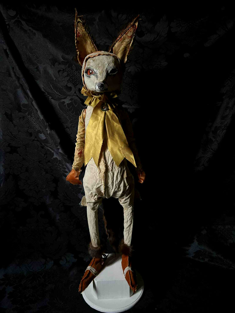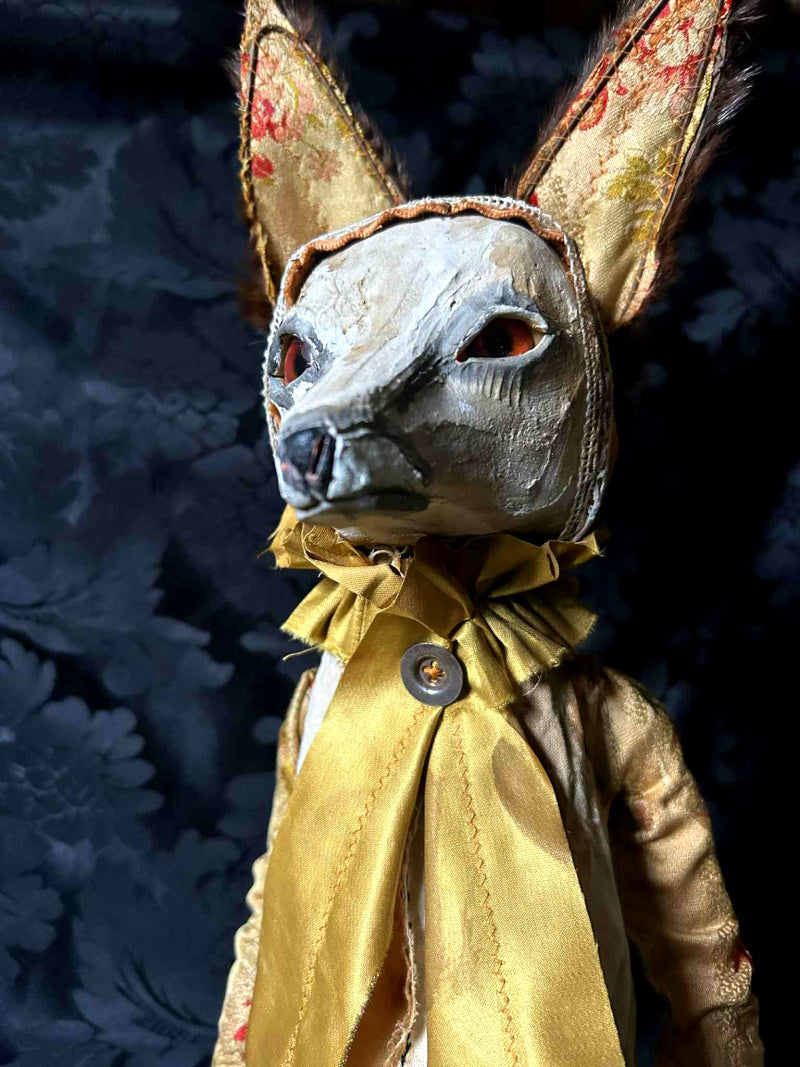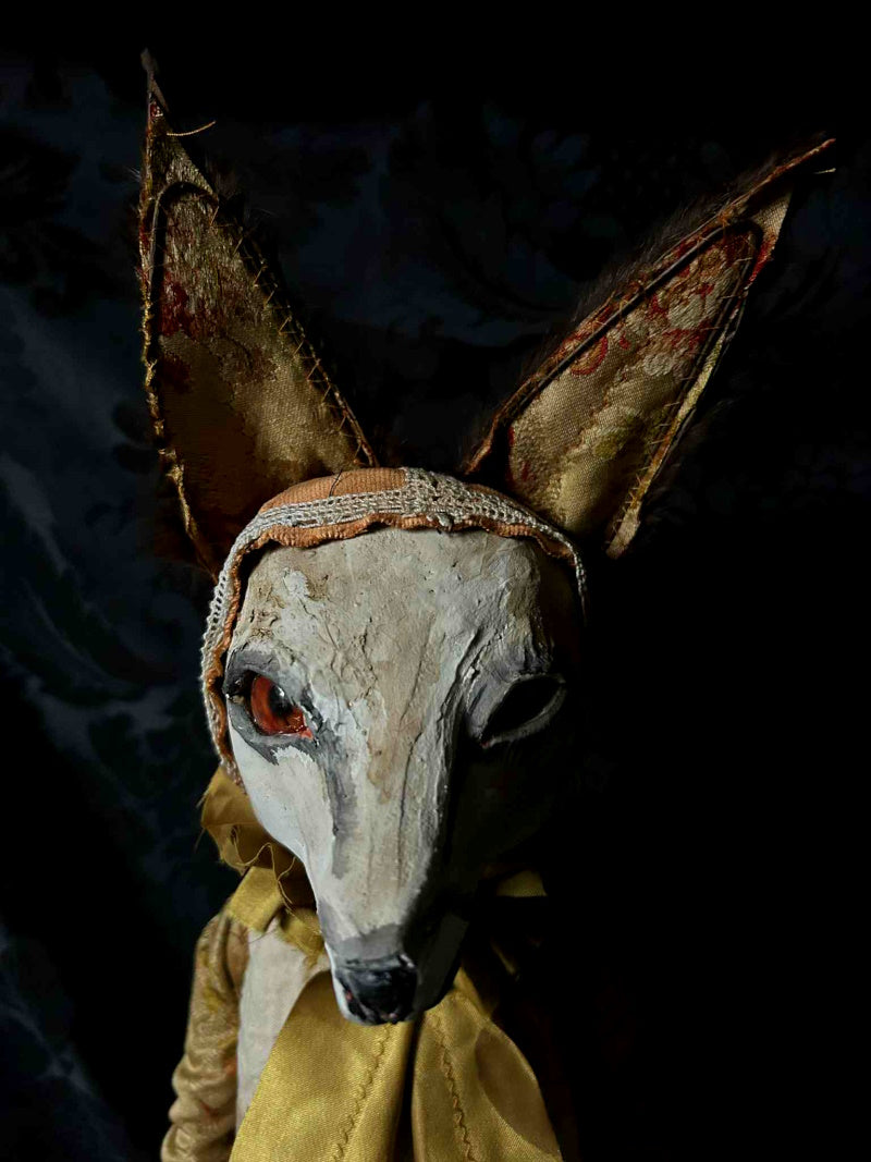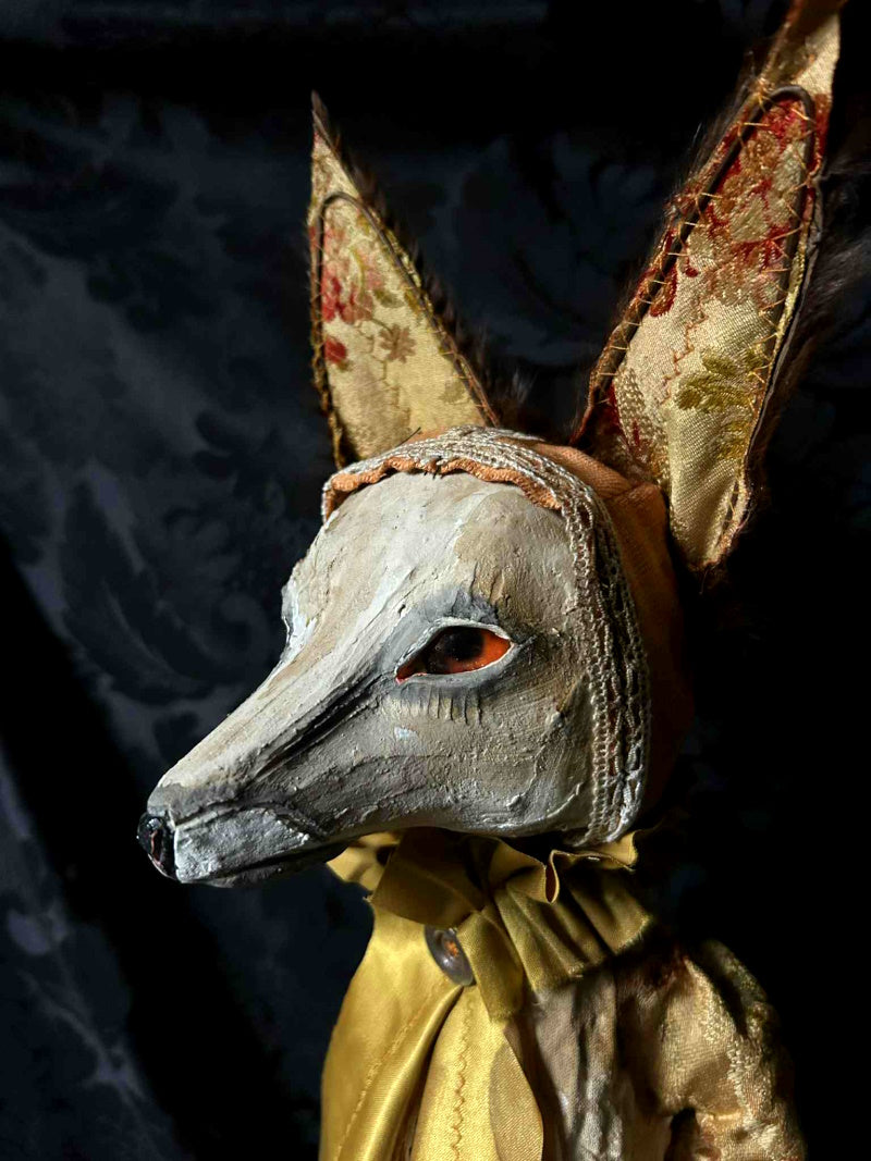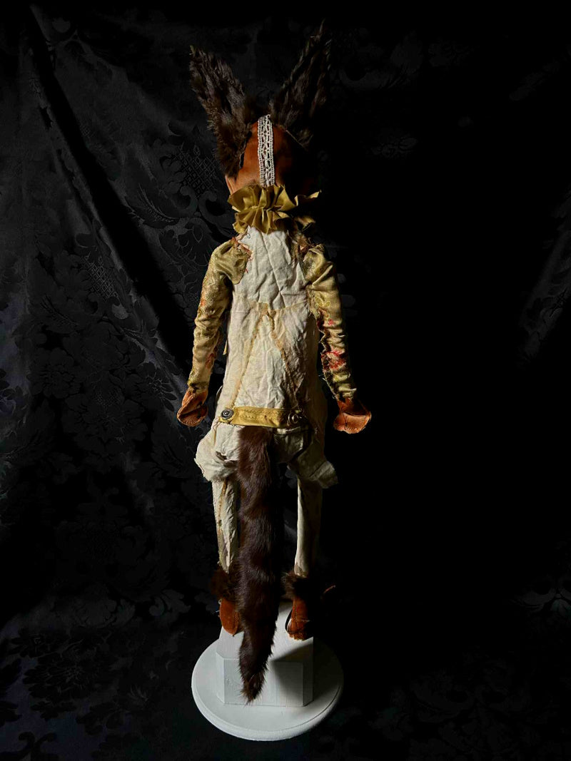 TURIYAH is a golden toned fox, in 1800's French fabric and antique fur.