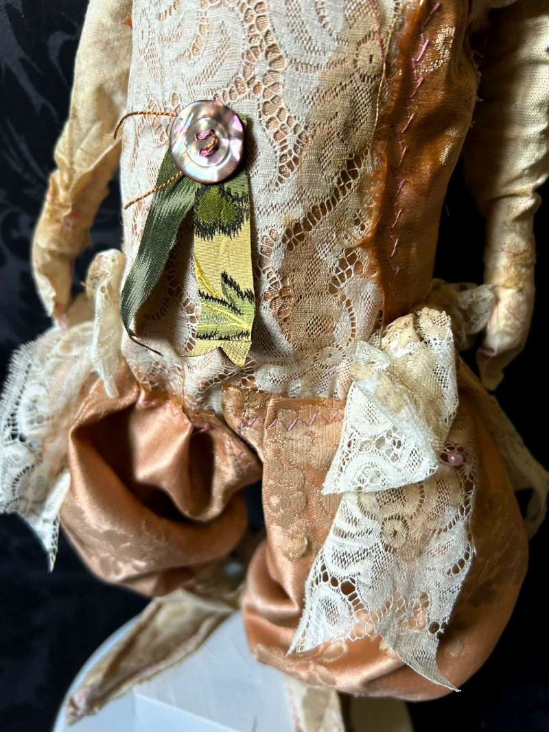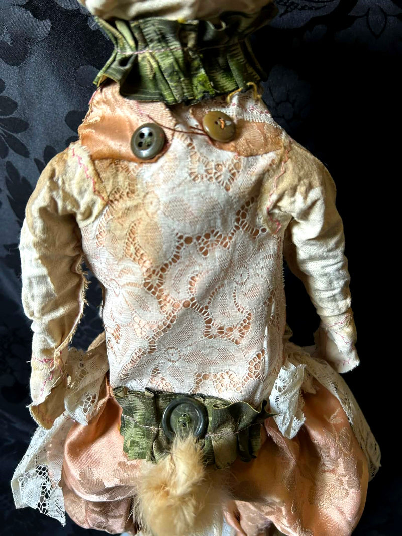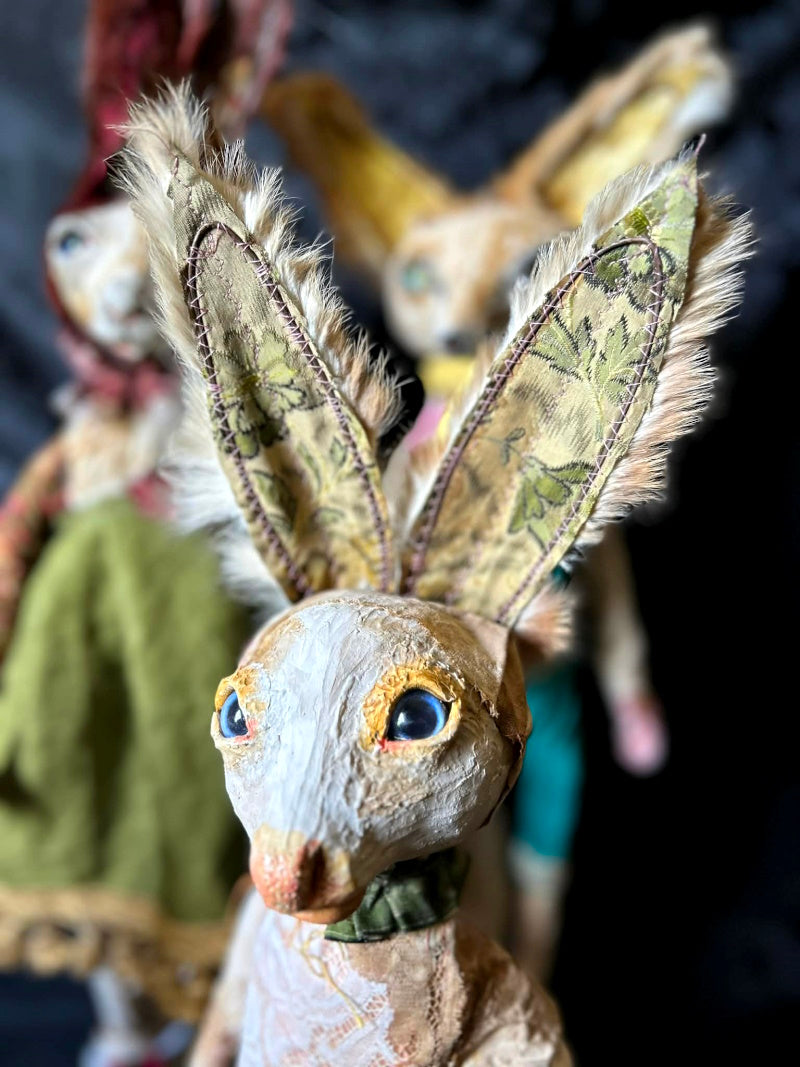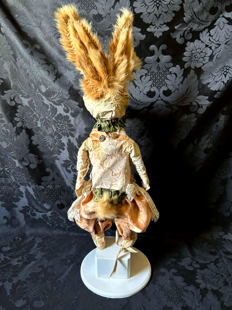 UVALDE is a blue eyed rabbit in antique brocade and antique fur.